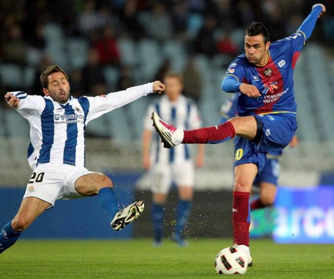 Se sabía que iba a ser un partido difícil en Anoeta, pero hasta el punto que se llegaran hasta los últimos minutos con el resultado tan apretado que cualquier equipo podía haberse llevado la victoria.Los primeros minutos del partido fueron para los locales, que salieron con mucha intensidad para intentar que el Levante se ahogara atrás y se le pusieran las cosas más complicadas.El centro del campo donostiarra formado por Aranburu y Rivas dominaba ante Iborra y Xavi Torres y la Real se acercaba con peligro ante la portería defendida por Munúa.Ante esto, el Levante se defendía atrás con la baja de Juanfran, que se tuvo que retirar lesionado a los 10 minutos y Luis dio entrada a Nano, que formó con Ballesteros en el eje central pasando a Del Horno a la izquierda. Poco a poco el conjunto dirigido por Luis García se metió en el encuentro y comenzó a crear peligro, pero se llegó al descanso con el resultado de 0-0.
